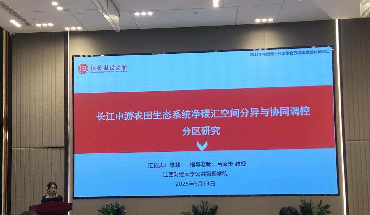 梁慧硕士(指导老师:吕添贵教授)在乡村振兴与农业农村现代化分会场进行题为《长江中游农田生态系统净碳汇空间分异与协同调控分区研究》的论文宣讲。汇报聚焦于长江中游地区农田生态系统碳汇能力的空间格局与协同治理问题,研究基于2012—2023年长江中游31个地市的数据,综合运用Dagum基尼系数、社会网络分析及空间聚类等多种方法,系统解析了该区域农田净碳汇的时空演变规律、空间关联网络结构及驱动机制。该研究为通过强化核心辐射带动、促进技术跨区扩散、实施差异化生态补偿等策略,推动区域农业绿色低碳转型提供了科学依据,报告内容获得了与会专家们的充分肯定,为制定精准化的农业碳汇提升政策提供了新思路。